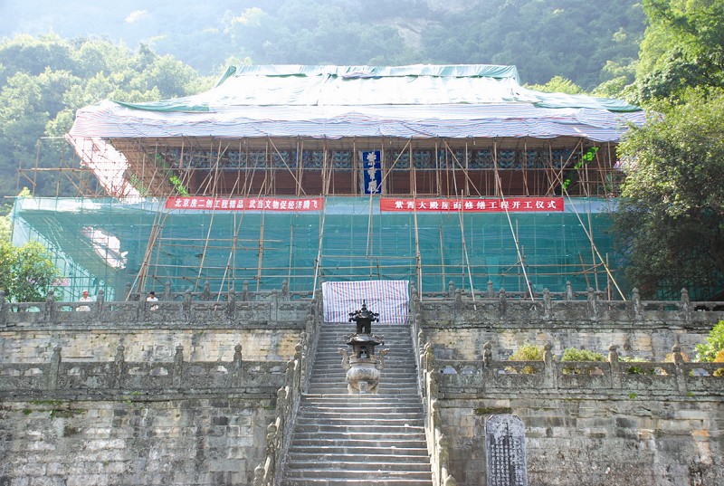 武当山紫霄宫已于6月底开始屋面修缮工程。据悉,为期3个月的工程主要对紫霄大殿、龙虎殿、东西配殿等屋面进行维修,资金投入为110万元。