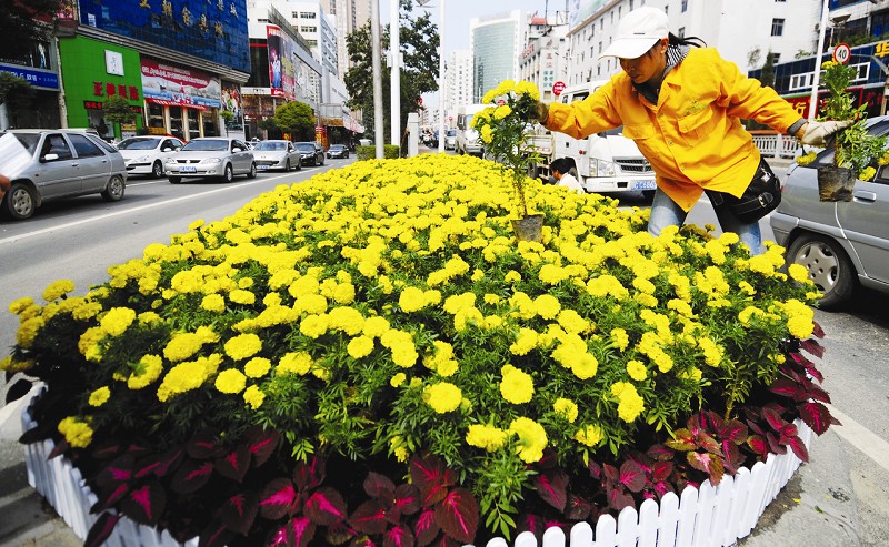 鲜花上街迎国庆