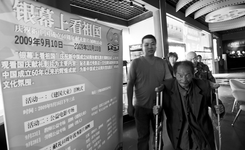 福利院老人免费看《建国大业》