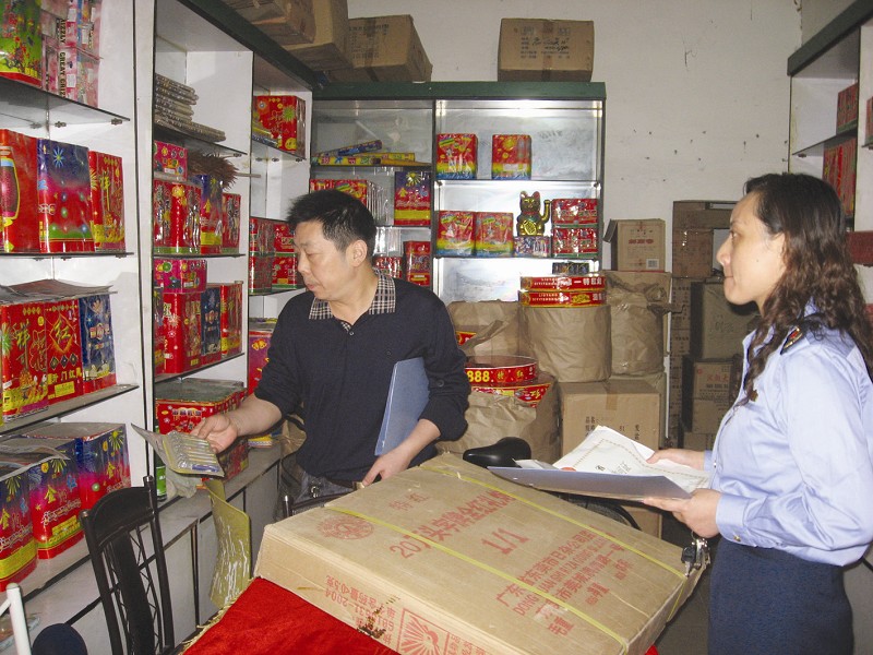 在离该店不到200米远的一家鞭炮专营店里,执法人员检查发现,虽然该店老板销售鞭炮的许可证已过期,但老板还是在一间大约10平方米的房间里,摆放了大量的烟花爆竹。工商执法人员依法对这两家无证无照经营烟花爆竹窝点进行查处,并通知茅箭公安分局治安大队对两家店内的烟花爆竹进行异地查处。