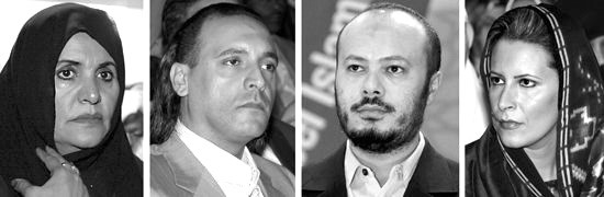 艾莎是卡扎菲唯一的女儿,被称为利比亚的第一公主,是卡扎菲最宠爱的孩子。穆罕默德是卡扎菲的大儿子,为其前妻法蒂赫所生,曾是利比亚电信业的“掌门人”——利比亚邮电总公司主席。脾气暴躁的汉尼拔是卡扎菲的五子,2008年7月,汉尼拔被控攻击两名仆人,在日内瓦被捕。