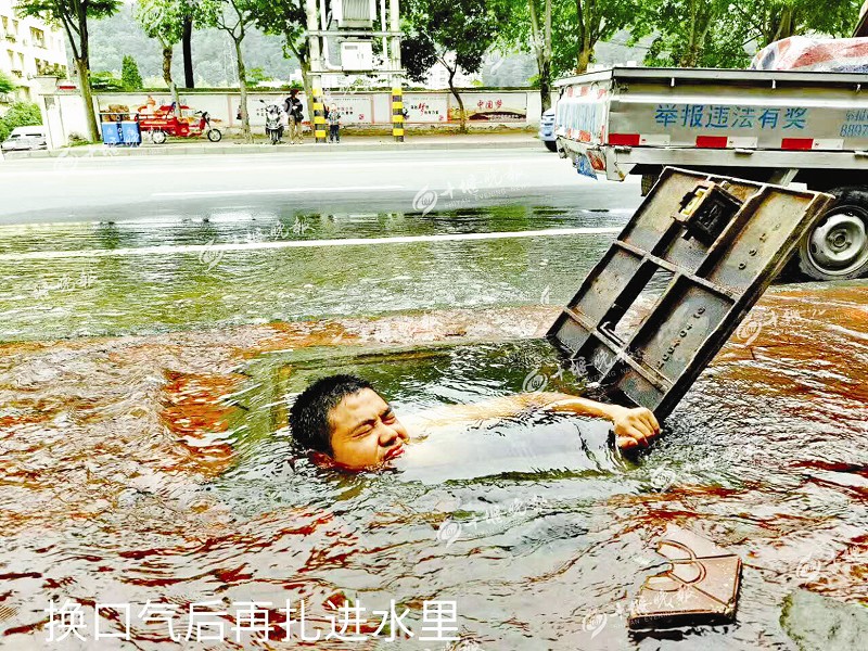 昨日上午,水务哥泡在一米多深的冷水中关阀门。当日,汉江路篷布厂附近路段一支线管道发生断裂,自来水喷涌而出,事故已造成附近两家单位停水,需立即进行抢修。为将影响降到最低,一名维修工人奋不顾身跳入超过一米深的阀门井中。因水势汹涌,他只能潜入水中,用手摸索寻找水阀位置。他在水里待了近半个小时,来回换了好几口气,才成功将阀门关闭。两个小时后,断裂的管道被更换,附近居民用水恢复正常。