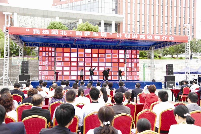 本报讯5月6日上午,十堰市首届“我选湖北·圆梦车城”计划进高校巡回推介会在湖北汽车工业学院篮球场拉开帷幕,来自城区和各县(市、区)的企事业单位为大学生提供了6145个实习实训岗位和系列优惠政策。