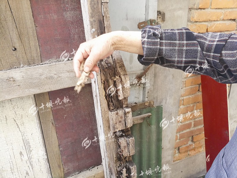 记者在该小区看到,一楼的各家住户的木质门框都被白蚁咬烂,能明显看到虫孔,有的地方稍稍用力就能掰下一块碎木渣。