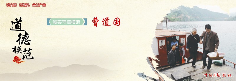 他诚实守信,在滔河大坝至陆家铺航线渡运20余年,渡坏了两条木船,撑断了10多支桨,渡了10多万人次,行驶里程约24万公里,从未发生过水上安全事故,也未失信过一个人、误过一次船。他摆渡乡邻,由此到彼,渡人渡己,也渡出了他无悔的人生。