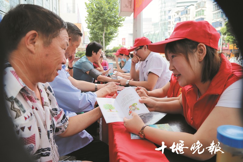 10日上午,汉江路街办夏家店社区卫生服务中心和六堰社区的医护志愿者,进社区开展创文知识宣传和义诊活动。图/记者 罗毅 通讯员 潘明胜尤永波 师晶晶 实习生 钟雨翮