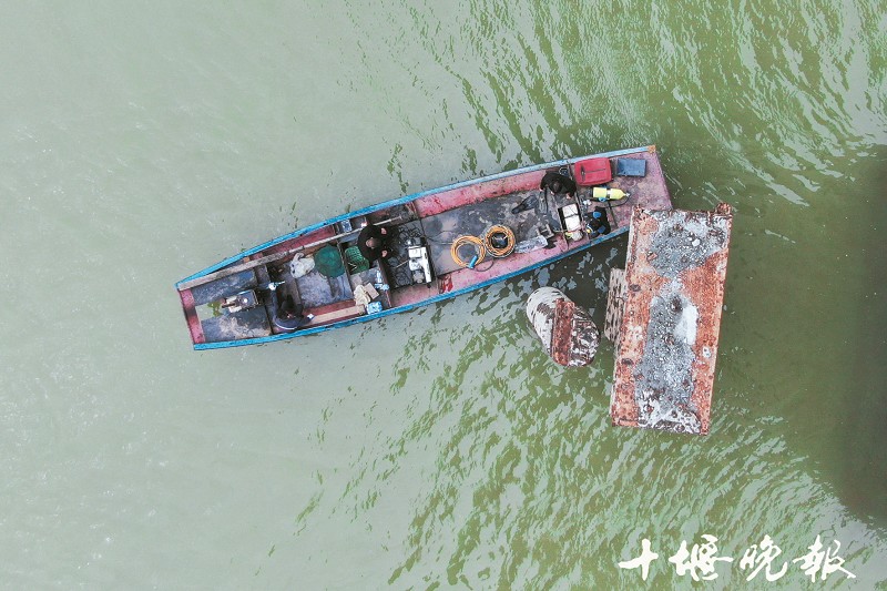 7月9日,赵勇与3名队员乘船来到汉江一座高速公路大桥下,他穿上工程