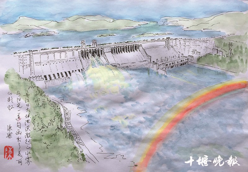 丹江口水库开闸泄洪景象壮观、高铁站气势恢弘、地标性建筑活灵活现……日前,丹江口市退休党员陈康乐和张湾区的周建炜分别创作了一组速写彩绘和钢笔画,为日新月异的家乡留影,为蓬勃发展的十堰喝彩,阅后别有一番韵味。