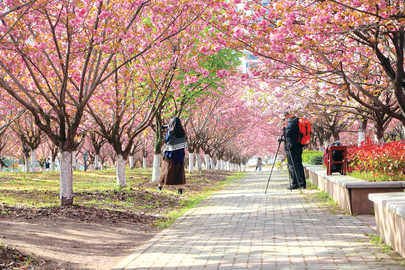 粉色樱花树构成一个浪漫长廊。梁彦明/摄