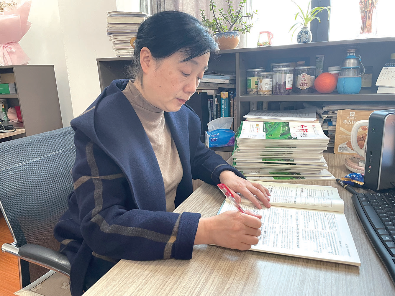 曹淑华,化学高级教师,教研组长,备课组长,市级优秀教师,市级骨干教师,从教34年。 曹淑华认为,高中化学是一门基础性、实用性很强的学科,对培养学生科学素养和缜密的思维方式非常重要。在课堂上,曹淑华随和、亲切,她常常在教学中联系学生的生活,让学生积极参与课堂之中。她走进学生,关注每个学生的状态,用自己的感染力调动学生。 但是化学学科中包含大量的定性与定量的分析,侧重于抽象思维,复杂,有难度。如何在教学中化繁为简,化难为易?曹淑华多采用“探究式教学方法”,课堂教学注重创设宽松愉悦的氛围,调动学生学习化学的兴趣与热情。 “同学们知道吗,有的奶茶中也会有化学成分。”曹淑华从同学们喜欢的奶茶入手,讲酚类物质和醛类物质的添加会带来类似水果奶茶的口味。“为什么做鱼的时候放醋和酒口感更好呢?”曹淑华介绍,原来醋和酒可以形成酯类,它具有芳香气味,闻起来很鲜美。在曹淑华的课堂上,干燥剂、自热火锅……很多生活中的物品和现象都拿来为她的教学所用,学生们听得津津有味、兴趣盎然。 作为备课组长和教研组长,要带领团队共同成长,她感到了一份沉甸甸的责任。曹淑华通过组内师徒结对、互相听课评课、集体备课等,不断地发现问题、研究问题,进行卓有成效的探索与实践,在教学中不断探索新的授课形式。同时,带领老师们学习新课标、探讨课堂教学的改进方法、培训其运用多媒体课件的能力,不断提升他们的业务水平。 用自己的人格魅力感染学生,坚持“上好每一节课”是曹淑华心中最高的职业目标。