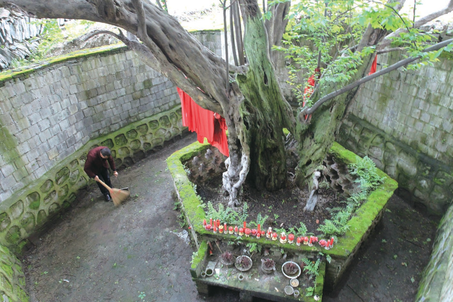 在丹江口市六里坪镇,村民出资两修地下天井,保护一棵600年的青檀古树。