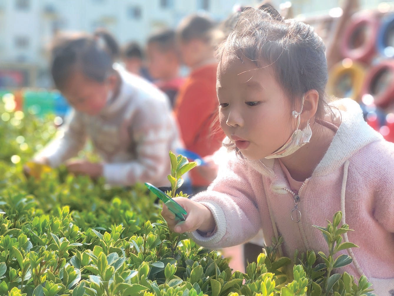 郧阳区南化塘镇中心幼儿园孩子们修剪树枝。