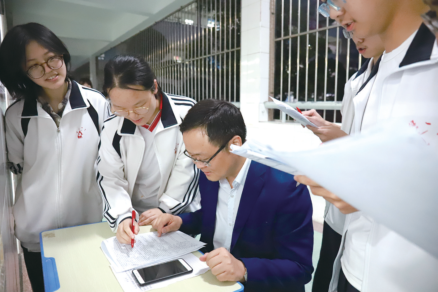 高三年级每节课前必须通过集体备课研究《课程标准》和高考真题,形成高质量的教学方案和教学课件,并通过主备人讲公开课、研讨课来验证集体备课成效。各层次班级老师根据自己班级学情进行个性化二次备课,保证备课的精准高效。课后精准辅导是高三老师在充分了解学情的基础上给学生进行个性化的辅导。日常备考过程中高三老师坚持高频次的作业批阅,及时高效了解学生的考点理解落实情况,并利用课间、晚餐时间给学生进行针对性的讲解和辅导,最大限度地解决学生的疑惑。高三开学以来,每天晚餐期间办公室里学生川流不息,人声鼎沸。