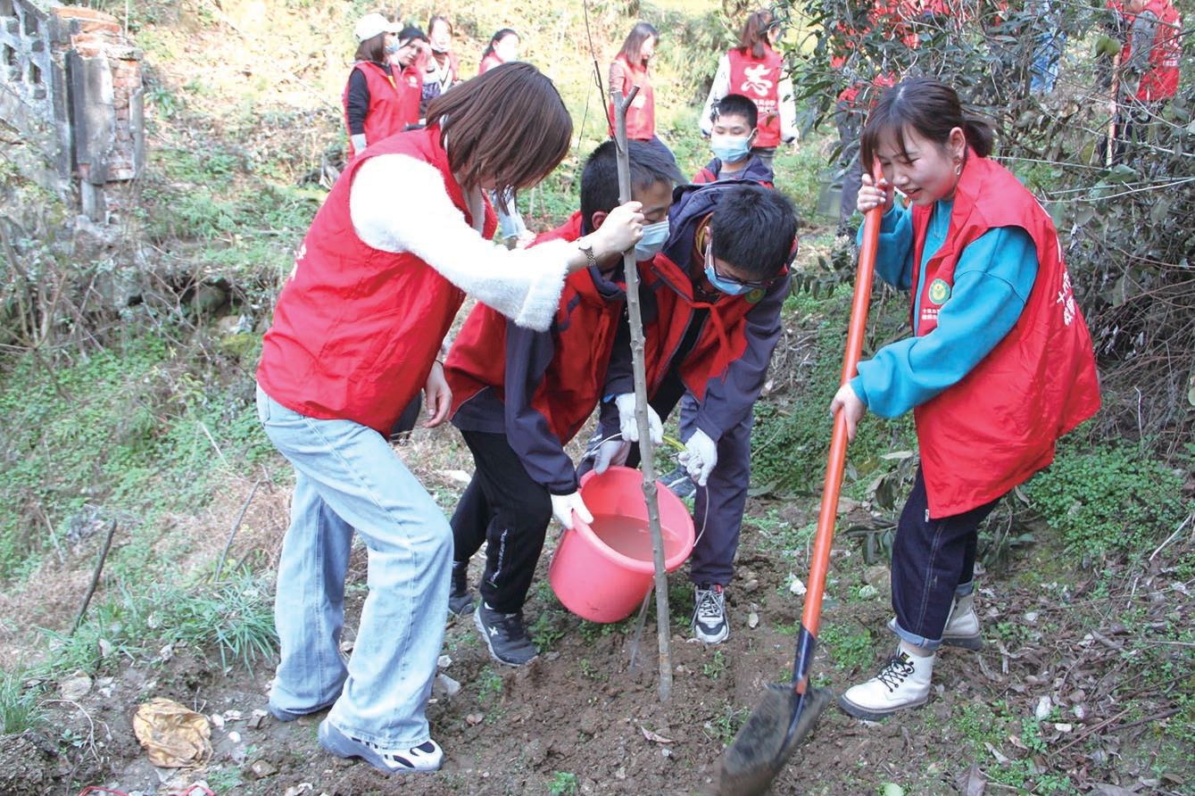 3月10日,东风小学党员教师和学生志愿者在社区干部的带领下前往张湾区汉江街办东风社区东沟村参加义务植树志愿活动,种下一棵棵树苗,为大地增添片片新绿。通讯员陈腊娜