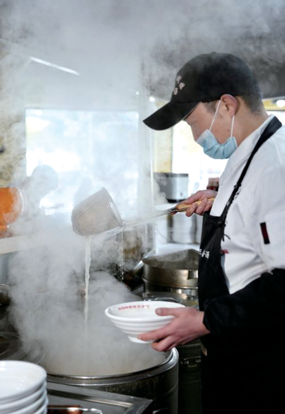地道的郧阳红薯粉、秘制的鲜卤牛肉、砂锅熬制的牛骨汤,搭配现擀皮现包的饺子,汤鲜粉滑,浓香四溢。