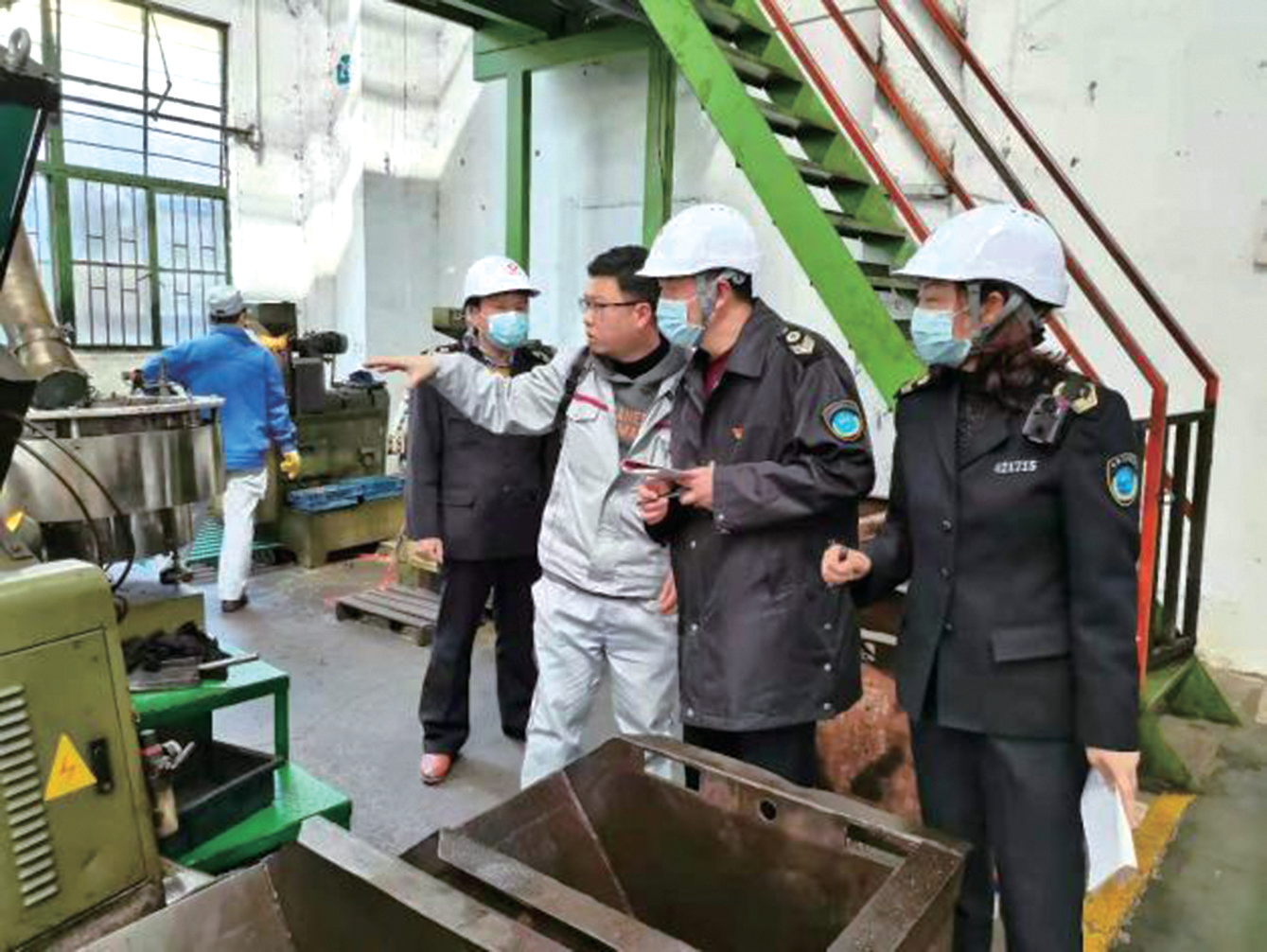 市卫计执法局对企业作业场所中的职业病防护进行指导。