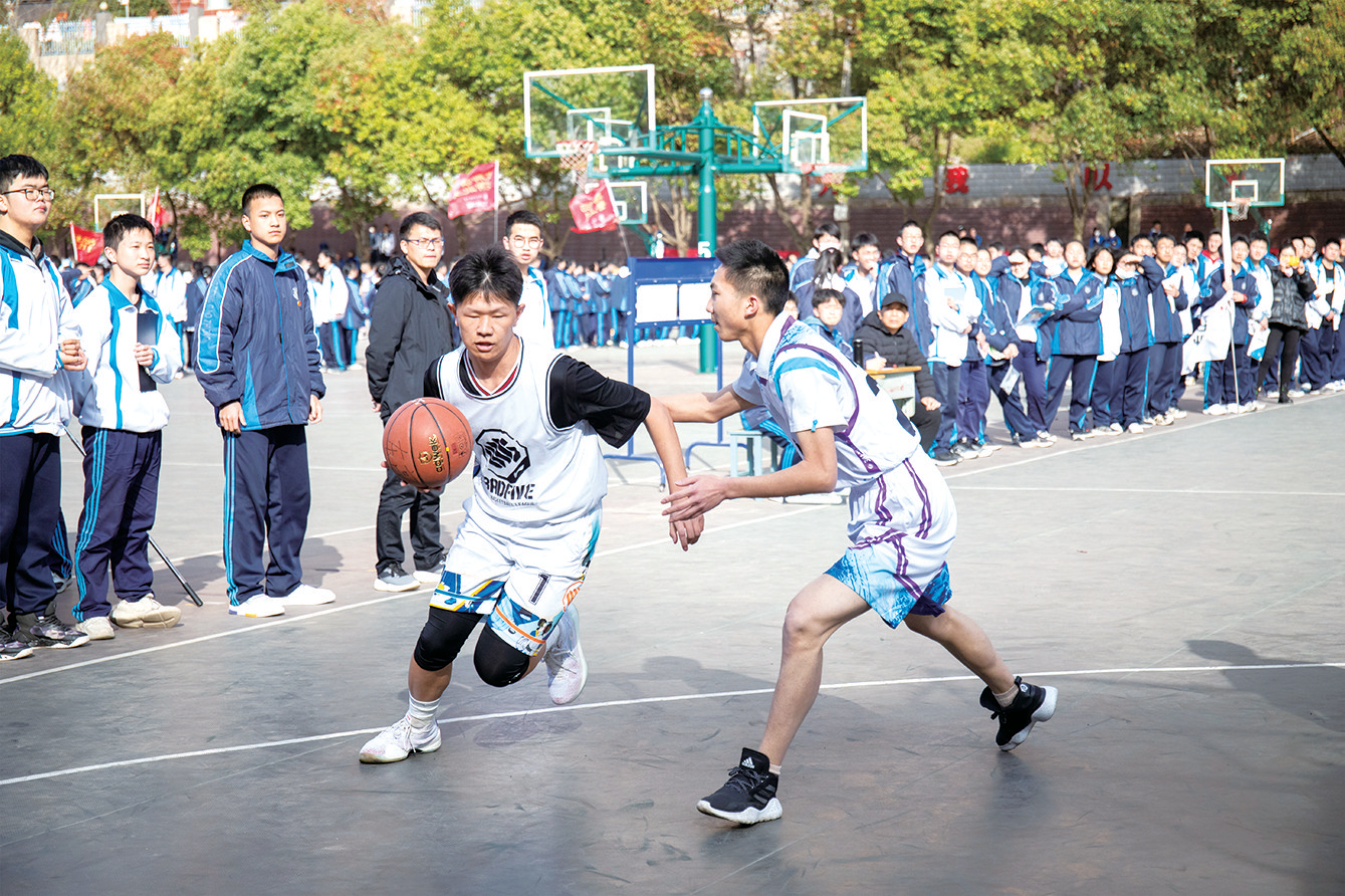 当天下午,在简单的预热和开幕式后,16支队伍分别在各自场地同步展开激烈斗争。双方队员斗志高昂,投球神勇,密切配合,尽显青春活力。场内队员们咬紧牙关,拼尽全力抓住投球机会;场外的啦啦队也不甘落后,奋力摇旗呐喊,鼓劲加油,增添了篮球场上的火热氛围。经过激烈的角逐,高二(17)班赢得了比赛。