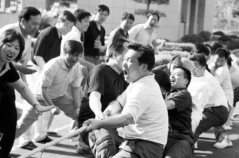 “加油!加油!”昨日下午,市行政中心院内异常热闹,迎七一行政中心机关干部职工拔河比赛在此火热进行。为庆祝建党88周年,增强机关干部职工的团队意识和拼博精神,培植健康向上的文化氛围,推动和谐机关建设,市直机关工委组织了此次比赛,行政中心16个部门200余名干部职工参加了比赛。 图/记者 张建波