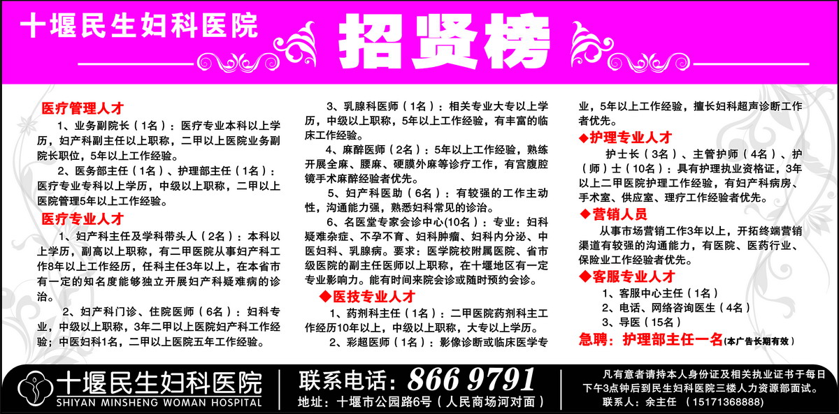 十堰民生妇科医院招贤榜