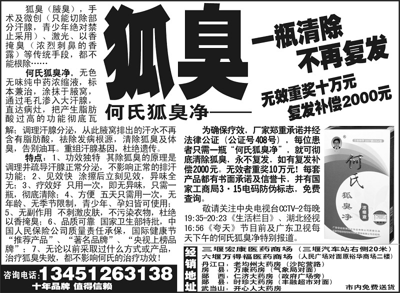 狐臭一瓶清除 不再复发