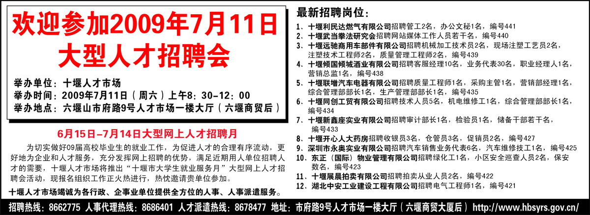 欢迎参加2009年7月11日大型人才招聘会
