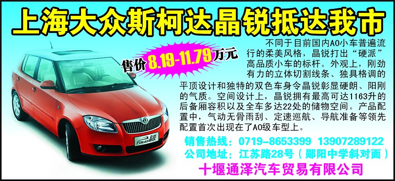 上海大众斯柯达晶锐抵达我市
