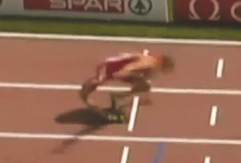 保加利亚男选手百米比赛中右腿扭曲变形惨不忍睹