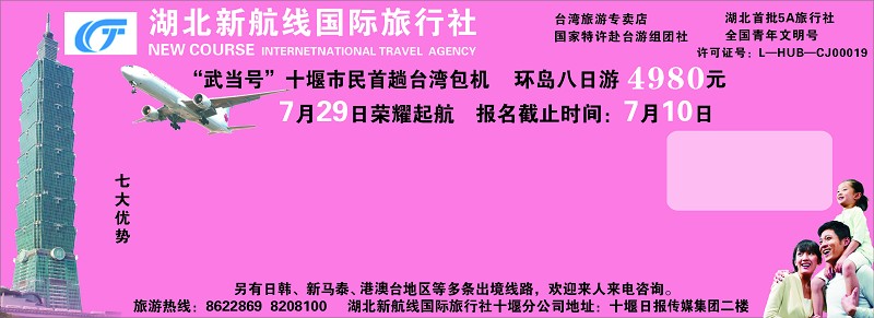 办理“往来台湾通行证”及“入台许可证”需要20多个工作日,市民报名参团需提前25天,以便出行!