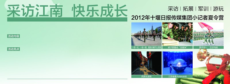 为让更多的少年儿童培养集体观念、锻炼意志、养成良好习惯,培养学员独立自主、吃苦耐劳、遵守纪律,增强学员团队协作精神,十堰日报社特组织全市优秀少先队队员、小记者参加由小记者全国联盟和南京国防教育基地共同举办的2012年暑假夏令营。