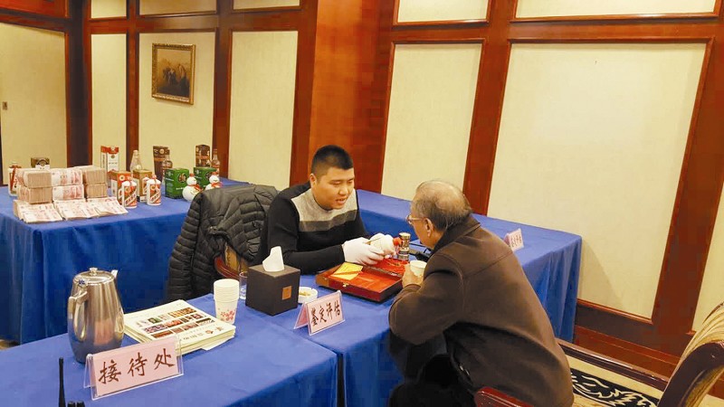 孙江南先生现场为市民鉴酒评估。