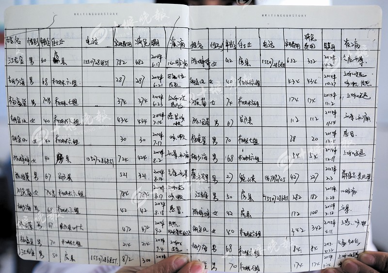 柏林村七组杨毫旺的名字也在小本本上。73岁的杨毫旺也是精准扶贫建档立卡贫困户,女儿远嫁东北,几年才回来一次,他和老伴相依为命。“我去看病,身上没钱,潘医生就说,‘二叔,你先去拿药,钱以后再说’。”杨毫旺说,潘东不仅减免医药费,还经常打电话告诉他怎么吃药。