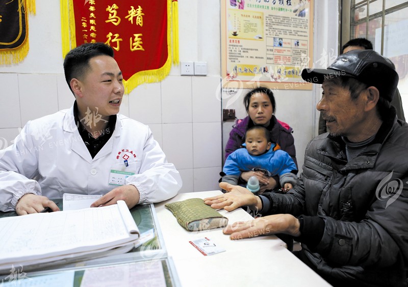 虽然只有34岁,但潘东“年轻老中医”的名气在当地颇响亮。柏林村卫生室一间10多平方米的诊室里,墙壁上挂着10多面患者送的锦旗,看病的人每天都排到诊室大门外。“最多的一天,光中药单子我就开了70多张,还不算西药。”潘东说。“我们每天中午都是忙到1点多才能吃口饭,然后接着忙,晚上从来没有准时下过班。”柏林村卫生室护士龚靖说。无论多晚,潘东都是看完所有患者才下班。“患者从城区、甚至是从河南、陕西坐好几个小时的车来看病,如果我不给他们看,他们就要住一晚,还要搭上住宿费。我辛苦一点,就能给患者省些钱。”潘东说。