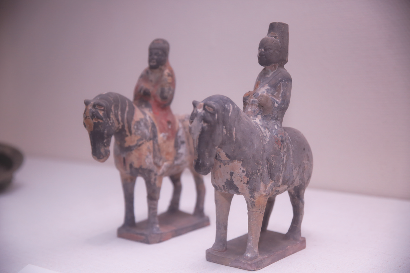 郧阳博物馆馆藏文物彩绘骑马仪仗俑。
