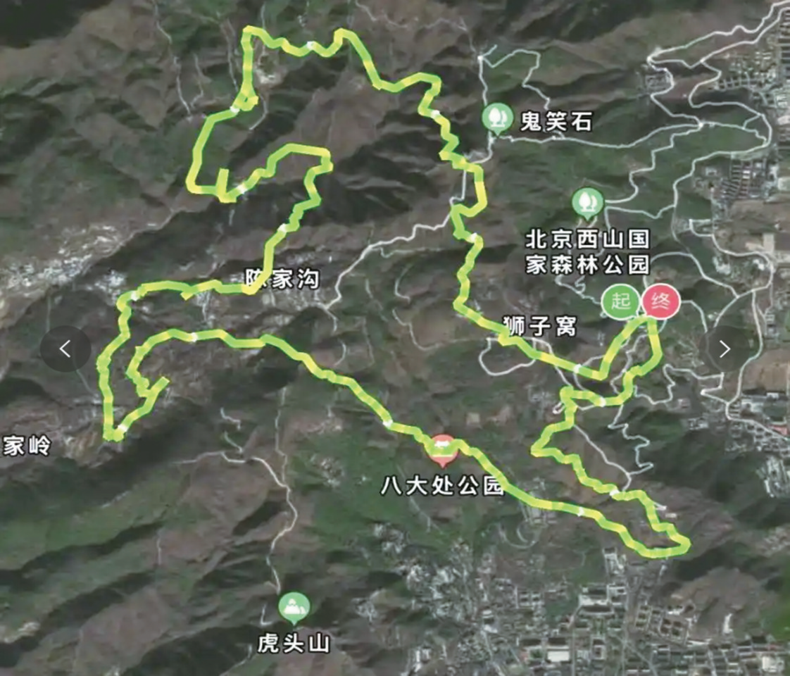 95后的刘露西2023年开始徒步,不仅走过北京周边,还去过日本、韩国、欧洲勃朗峰等地,她偏好轻装徒步,不在山上扎营。对于“用轨迹画图案”,她并不陌生:去年沉迷慢跑时,就曾在奥森跑过兔子图案。马年将至,看到小红书上“画马”路线热起来,她结合自己的爬山兴趣,选择去西山走了一条“画马”徒步线。“我们是跟着一个徒步俱乐部去的,活动还带有公益环保主题,参与者有20人左右,大家一路背着垃圾袋、拿着夹子捡垃圾。”